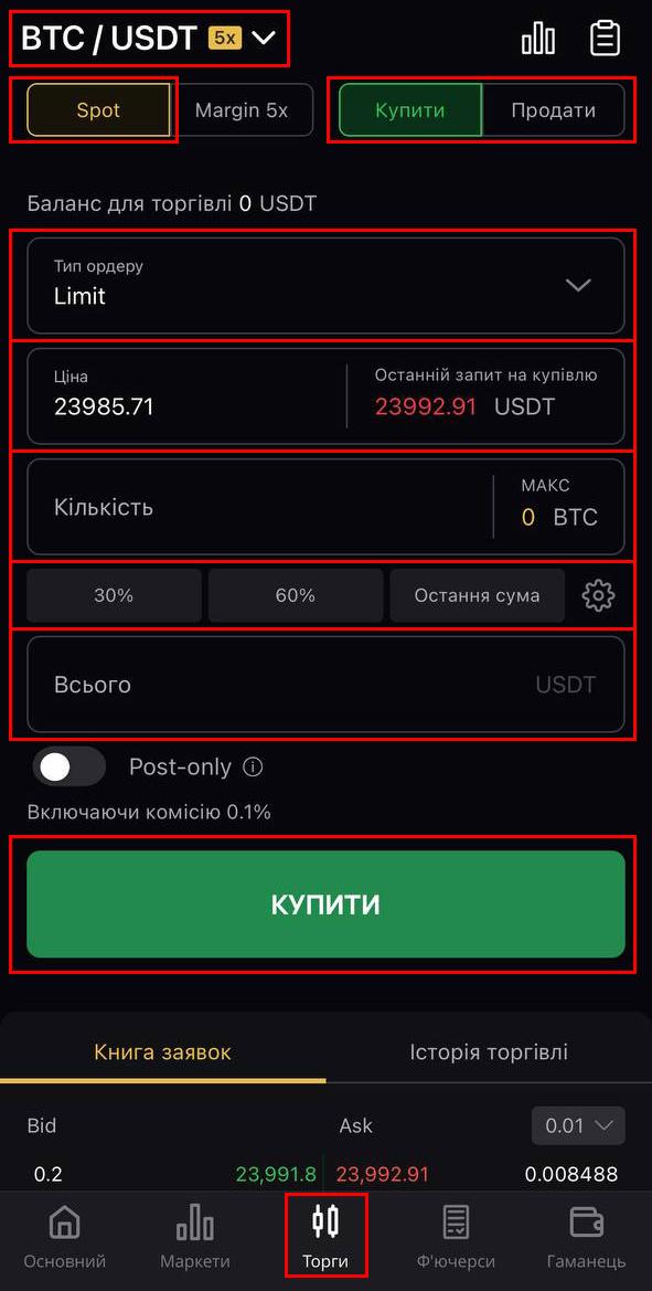При роботі з ринковим ордером ви не можете вказати ціну, за яку хочете придбати актив. Ви працюєте із найближчими до поточної ціни лімітними ордерами.